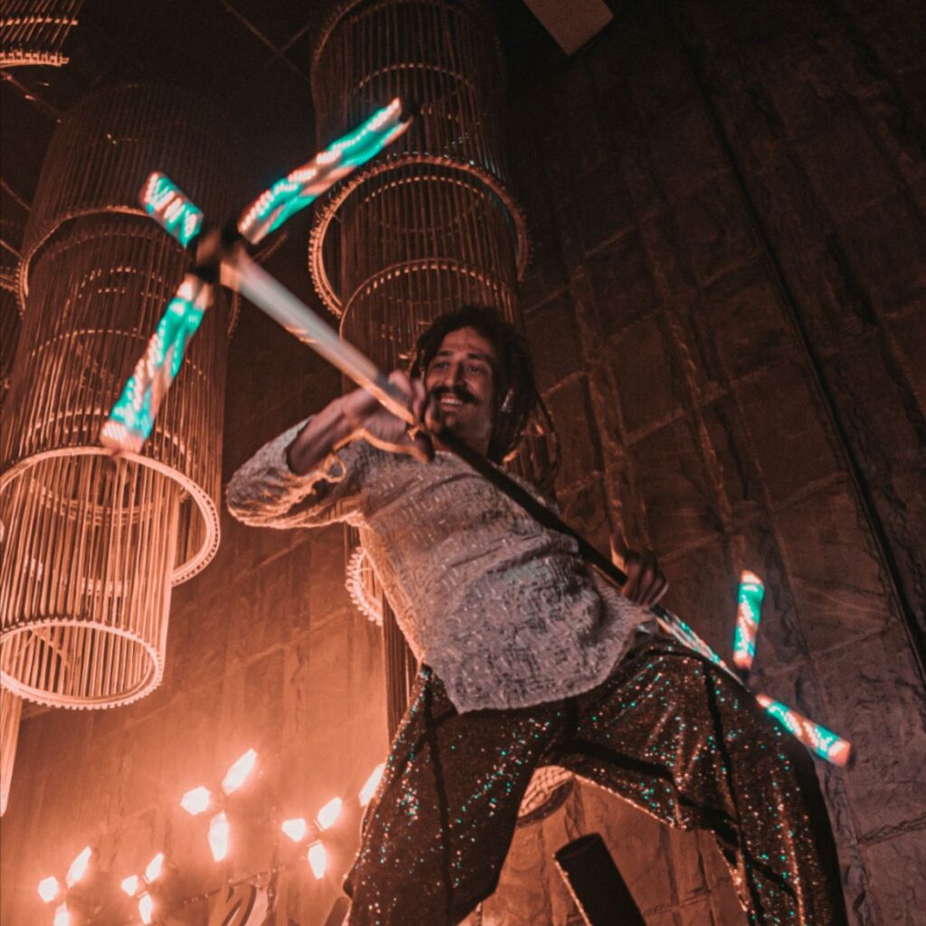 NirvanaFlow (Kolli Tarakesh), flowing for more than 3 years now, discovered Flow Arts as a playful way to connect movement, rhythm and focus, and everything changed when Dapostar entered the picture. Over the years, he has explored this unique prop as a bridge between dance, object manipulation and martial-inspired patterns, developing a style that is both technical and expressive.